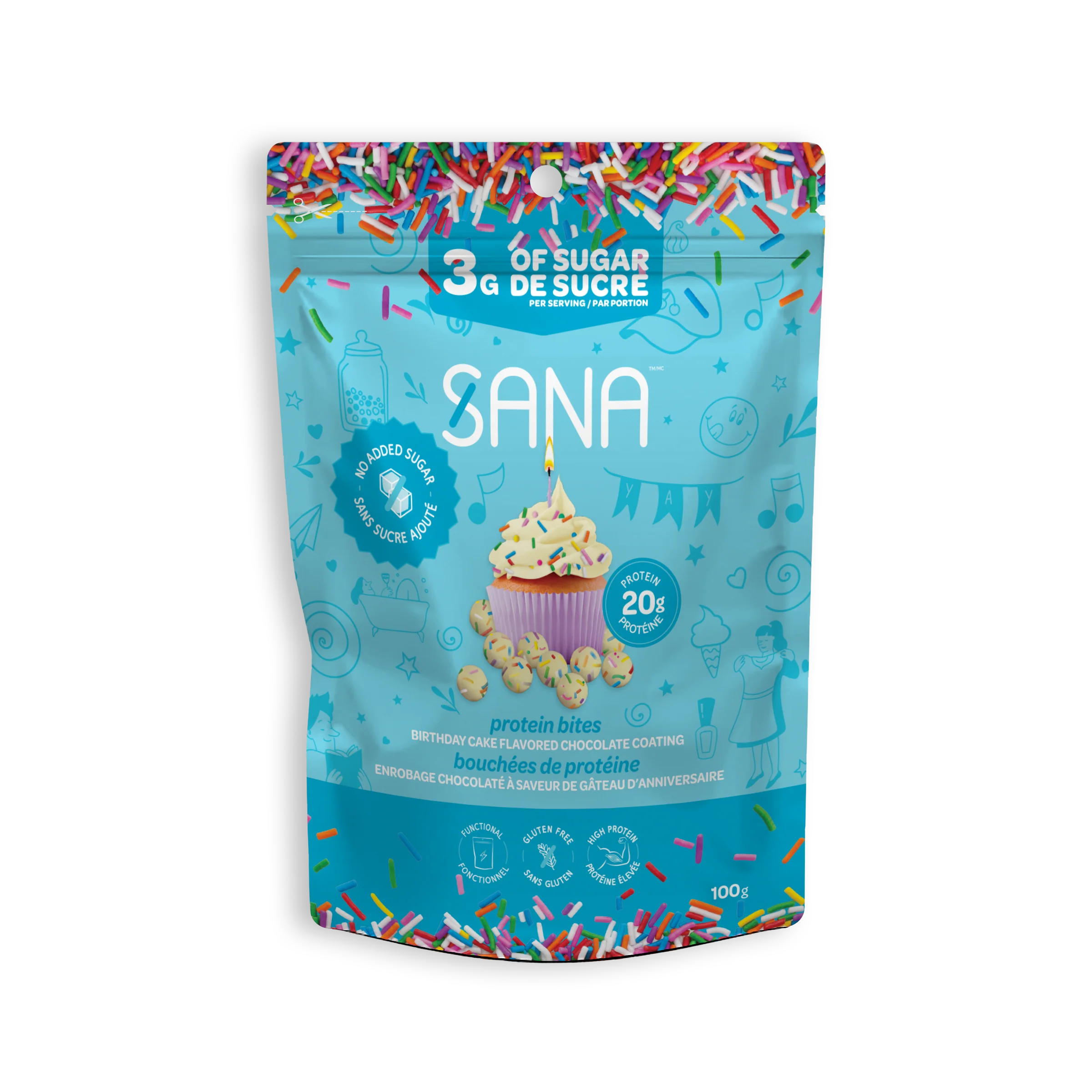 Découvrez une célébration quotidienne avec nos irrésistibles bouchées protéinées, enrobées de chocolat blanc onctueux, combinées à notre délicieuse saveur de gâteau d'anniversaire. Vous n'avez plus besoin d'attendre une occasion spéciale pour vous régaler. Retrouvez le délice de votre enfance dans chaque bouchée, avec une généreuse portion de 18 g de protéines et sans aucun gramme de sucre ajouté.